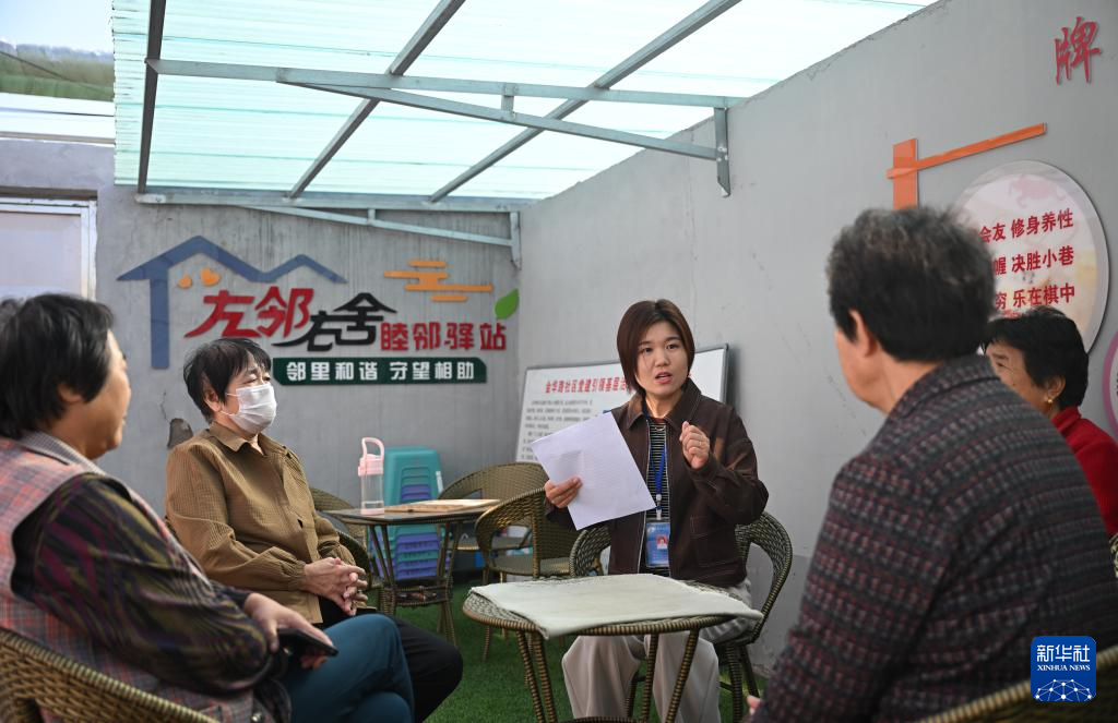 10月11日,在天津市宁河区芦台街道金华路社区,社区党总支副书记吴蕊(右一)就社区监控设备安装问题为社区居民进行解答。新华社记者 孙凡越 摄pagebreak