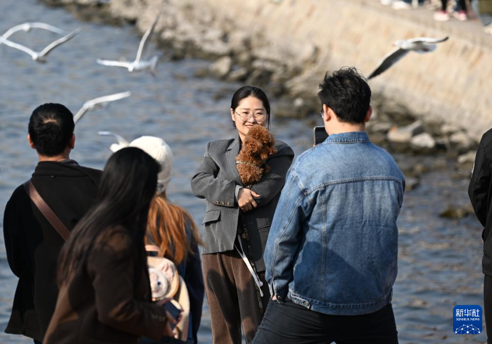 11月19日,游人在海河岸边留影。新华社记者 李然 摄