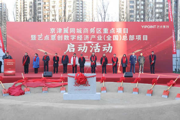 新华网天津12月18日电 18日,随着一铲铲热土培入基坑,京津冀同城商务区重点项目暨艺点意创数字经济产业(全国)总部项目正式开工,位于天津市红桥区光荣道与保康东路交叉口的项目现场挖机扬臂、工程车辆蓄势待发,一同见证着一座崭新的产业地标建筑将在这里拔地而起。