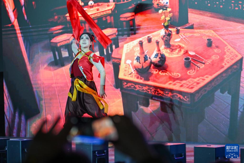 身着哪吒服饰的演员在天津哪吒小镇为游客演出(3月15日摄)。新华社记者 孙凡越 摄