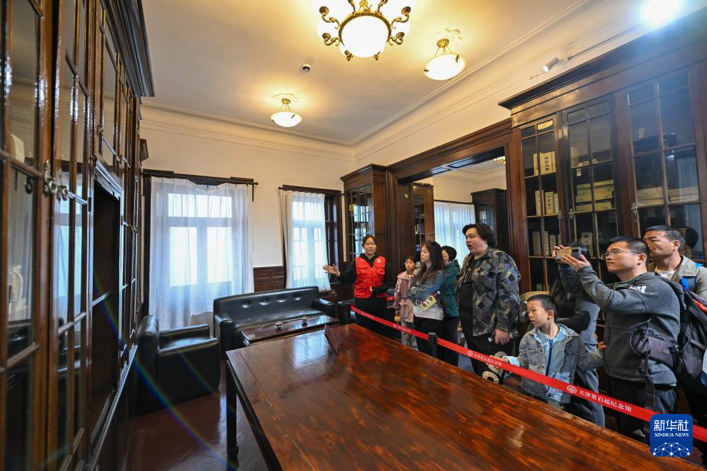 4月4日,讲解员在天津梁启超纪念馆“饮冰室”书斋内为游客提供免费讲解服务。新华社记者 孙凡越 摄pagebreak