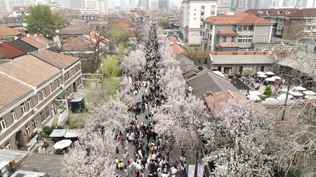 明媚四月,天津五大道历史文化街区千株海棠相约绽放,粉色花海绵延成片,百年小洋楼掩映其间。一年一度的海棠花节,让这份春日浪漫有了更多“打开方式”,吸引游客纷至沓来。