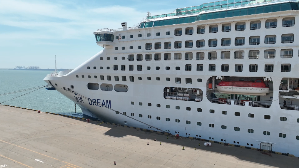 5月15日上午8时许,“梦想”号邮轮载运2000余名旅客缓缓靠泊天津国际邮轮母港。