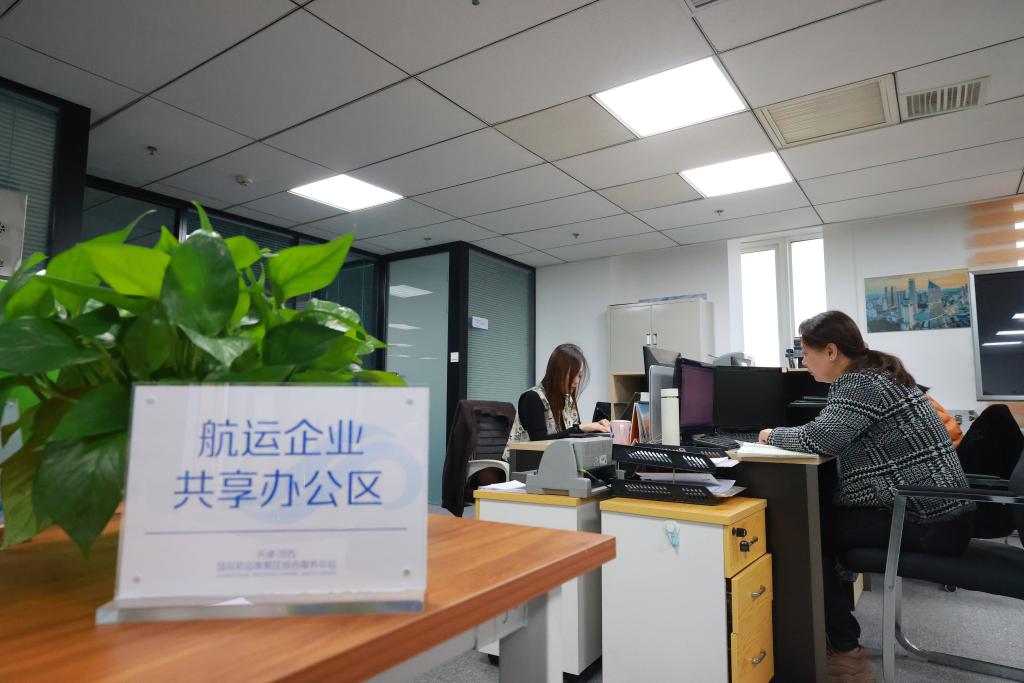 不仅如此,综合服务中心还设有“航运企业共享办公区”,给初创企业提供临时办公地点;“天津河西海关‘一点通’工作站”,为企业提供报关指导;“天津海事法院国际航运服务集聚区共享法庭”,帮企业进行诉讼调解……