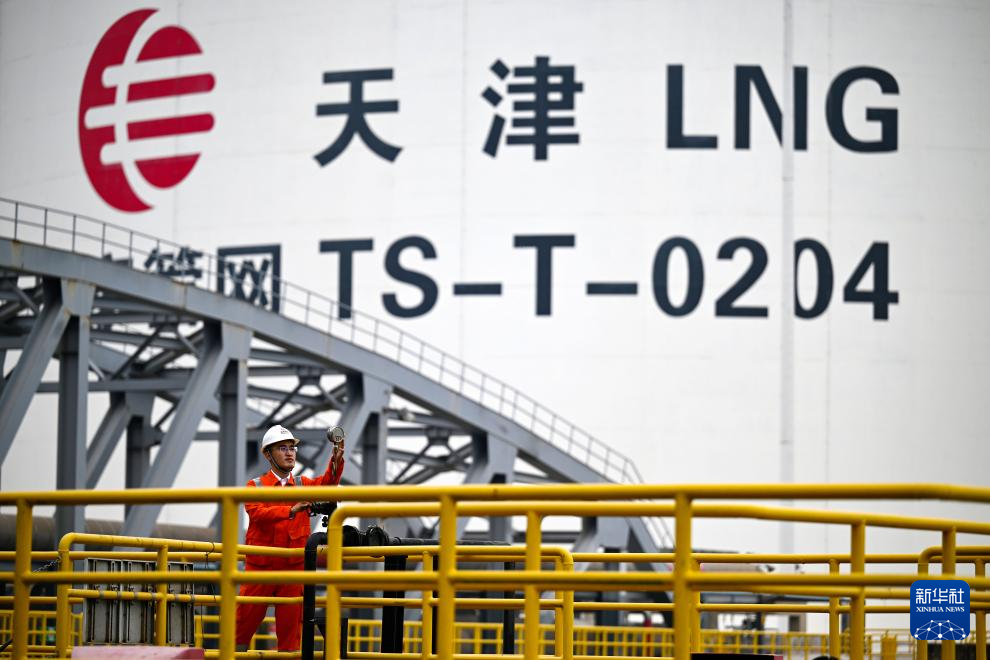 10月31日,国家管网天津LNG接收站工作人员在码头检查输气设备。新华社记者 赵子硕 摄pagebreak