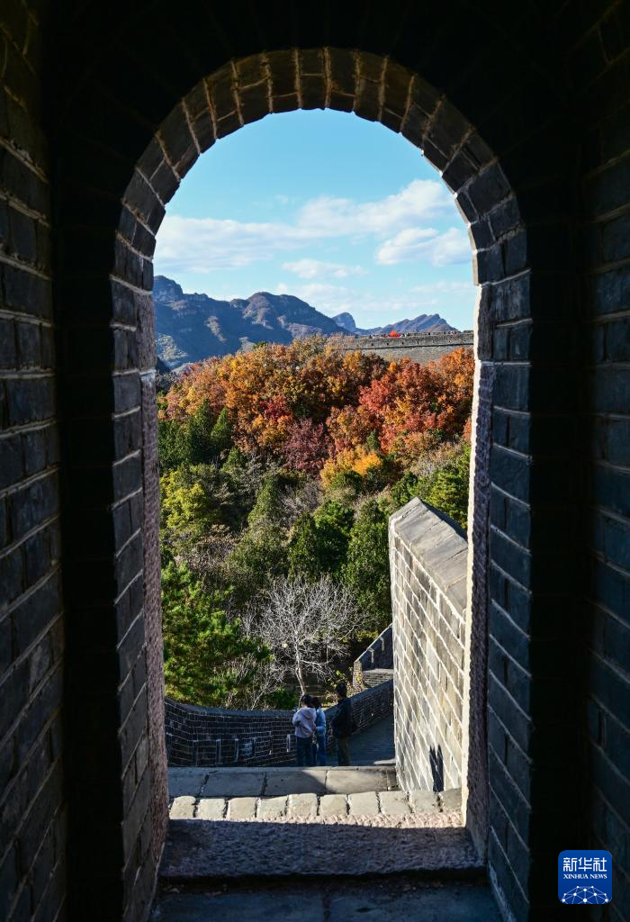 晚秋时节,位于天津市蓟州区的黄崖关长城,山峦间的彩叶层层叠叠、绚烂缤纷,将浓烈的秋意泼洒在长城内外。