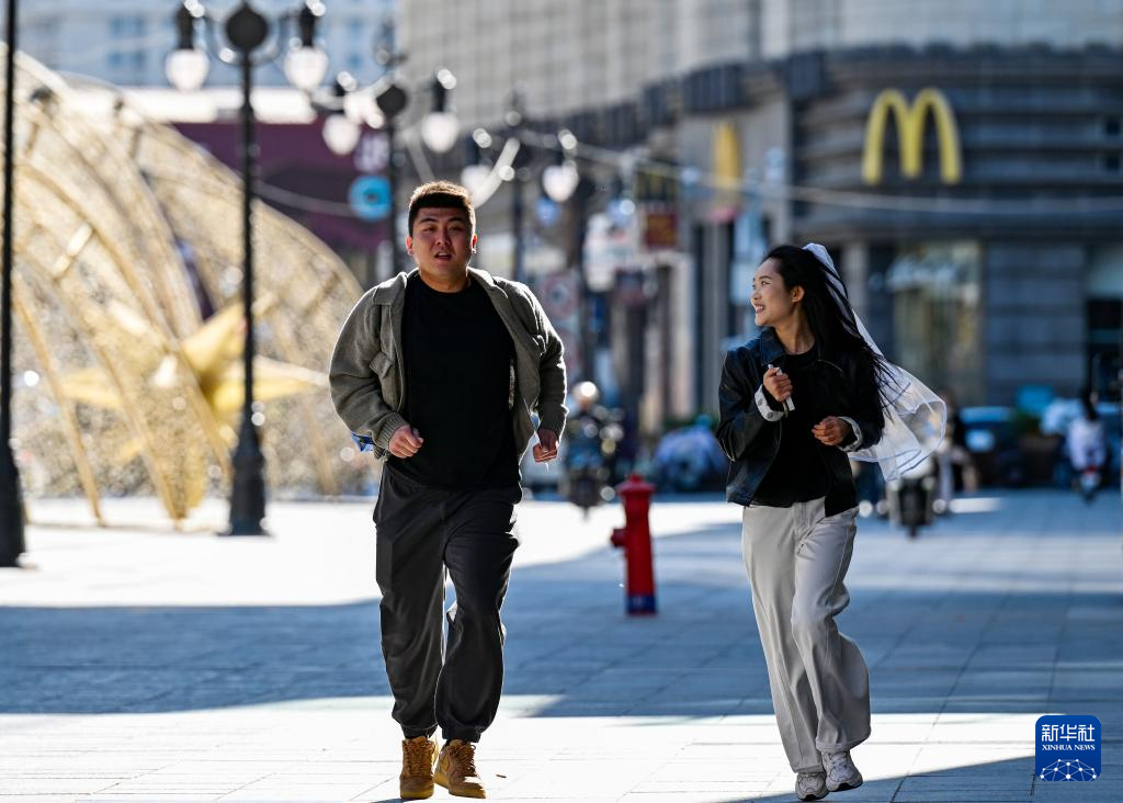 11月2日,参加活动的一对情侣在冲刺。新华社记者 赵子硕 摄pagebreak