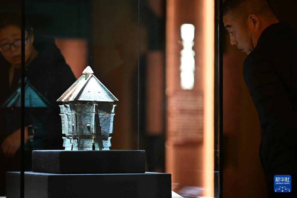 11月29日在展览上拍摄的展出文物亚址铜方尊。新华社记者 李然 摄pagebreak