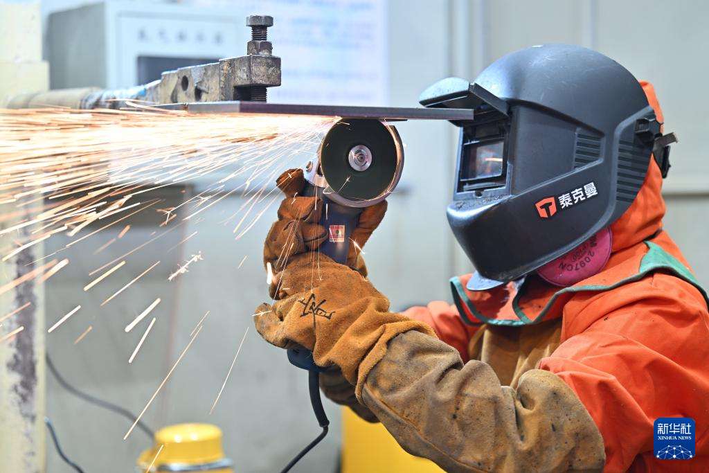 12月4日,选手在比赛中打磨焊口。新华社记者 李然 摄pagebreak
