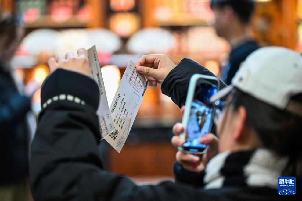 12月4日,在天津市红桥区谦祥益相声茶馆,观众在演出前拍摄票根。新华社记者 赵子硕 摄