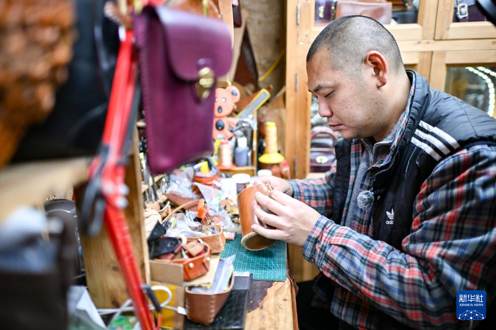12月9日,商户在制作皮具。新华社记者 张铖 摄pagebreak