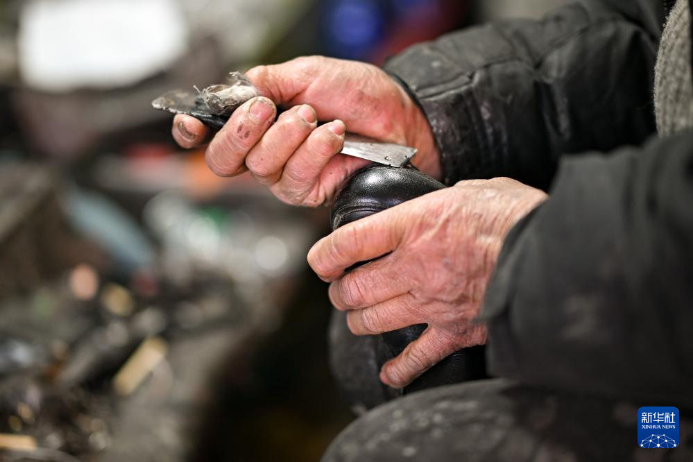 12月9日,商户在为顾客修鞋。新华社记者 张铖 摄pagebreak