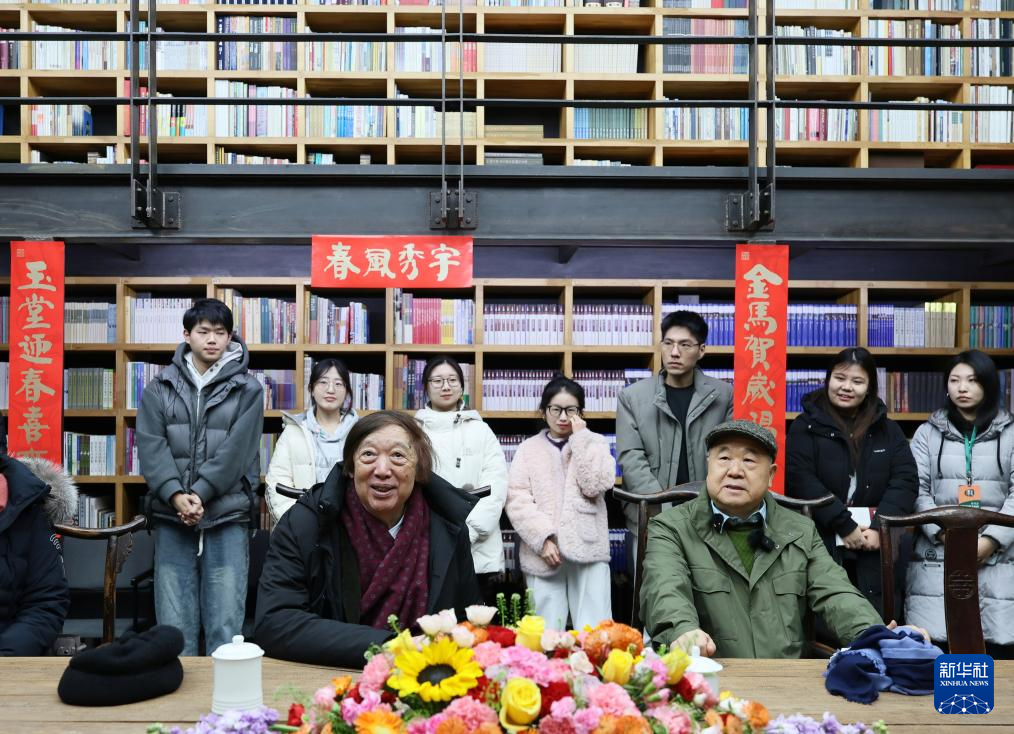 1月8日,莫言(右前)和冯骥才(左前)在天津大学与师生代表座谈交流。新华社记者 李然 摄pagebreak