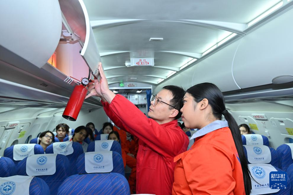 泰国学员黄雅仪在中国民航大学的客舱模拟器中开展实操训练(1月20日摄)。新华社记者 孙凡越 摄pagebreak