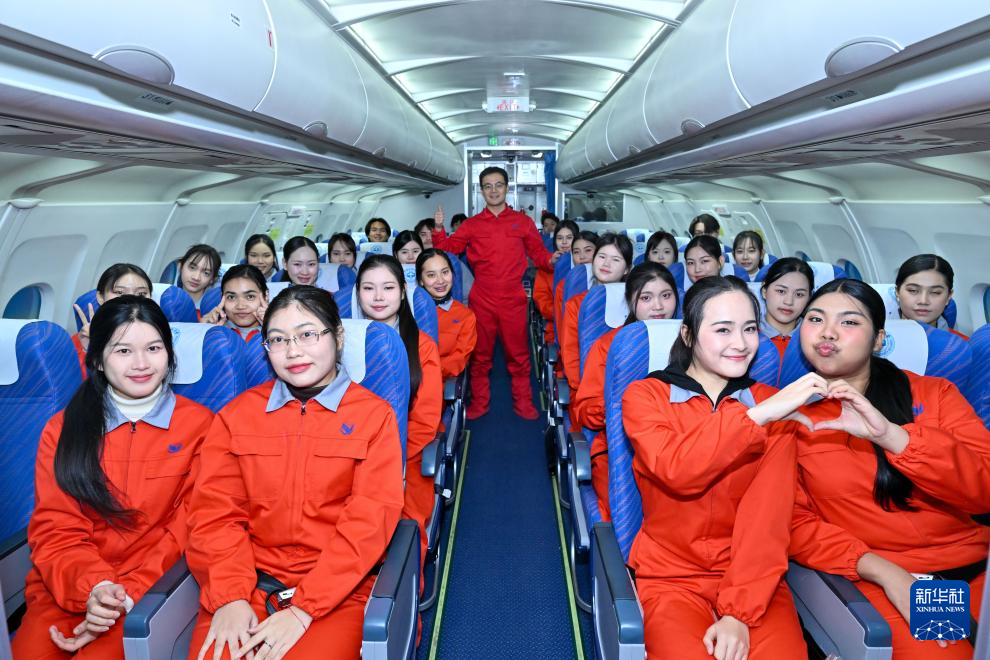 这是在中国民航大学客舱模拟器中拍摄的泰国学员与中方教师合影(1月20日摄)。新华社记者 孙凡越 摄pagebreak