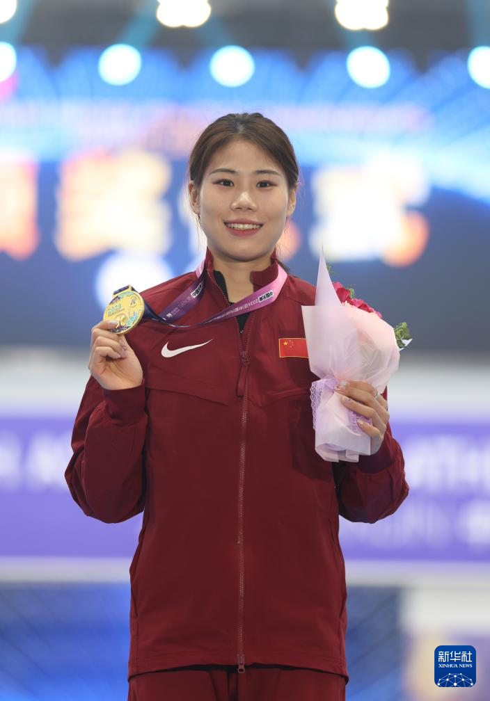 2月7日,季军中国选手危菱侠在女子撑杆跳高颁奖仪式上。新华社记者 孙凡越 摄
