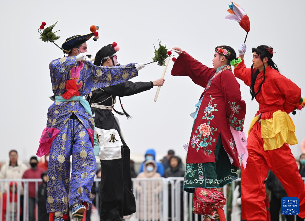 这是2月28日在花会展演活动上拍摄的宜兴埠永长高跷。新华社记者 李然 摄pagebreak