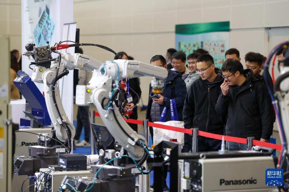 3月18日,观众在天津工博会上参观多款工业机器人。新华社记者 孙凡越 摄