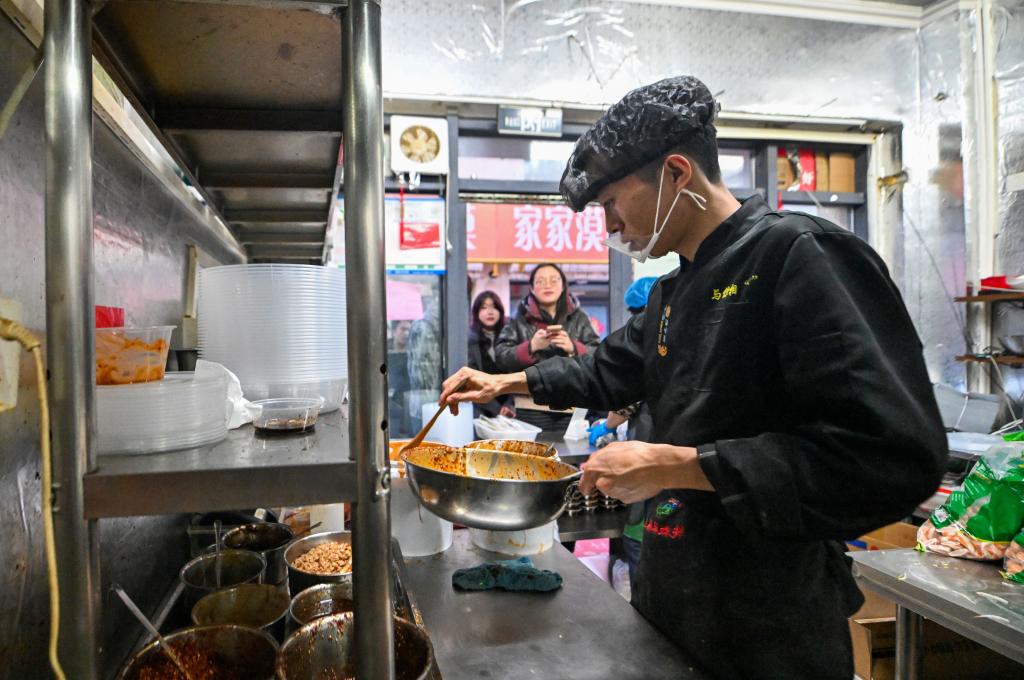 店长赵磊走起路来有些特别,因为多年前的一场意外致使他右腿截肢成了残疾人。靠着积极的心态和做麻辣拌的手艺,他咬牙撑起了自己的小店与生活。
